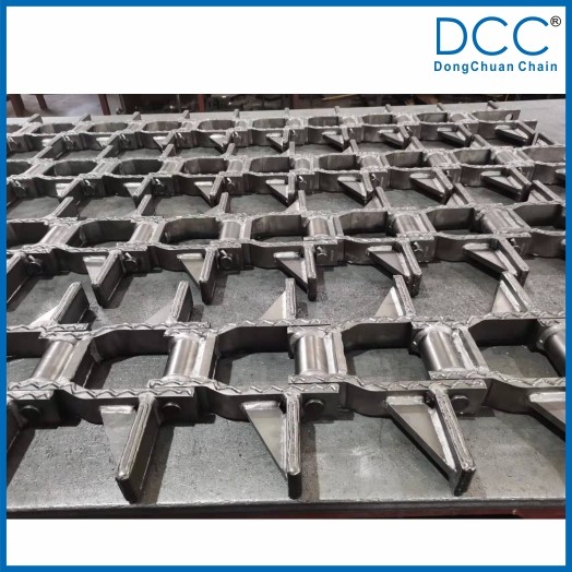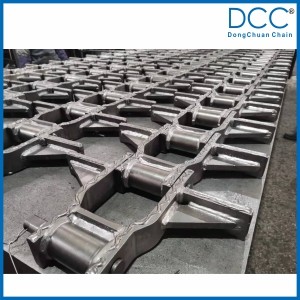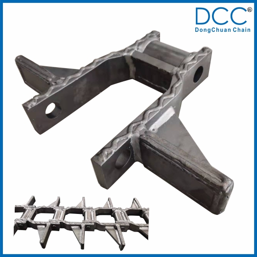 鏈條的刮板與鏈板焊接后又增加了一塊加強板,大大提高了刮板與鏈板的焊接強度,在鏈條的使用過程中,能使刮板長期承受較高的沖擊載荷而不脫焊。