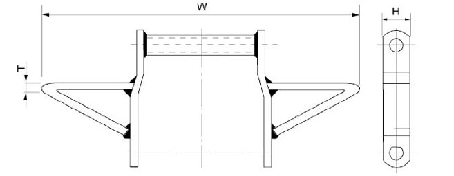 我公司提供與寬系列焊接彎板鏈配套使用的附件,我們對這些附件都進行了強化處理,針對不同使用環境的不同要求,給鏈板﹑銷軸施以表面高頻處理,在腐蝕性很強的環境,可以使用不銹鋼的材質。在鏈條上安裝不同的附件可以讓彎板鏈實現不同的功能。